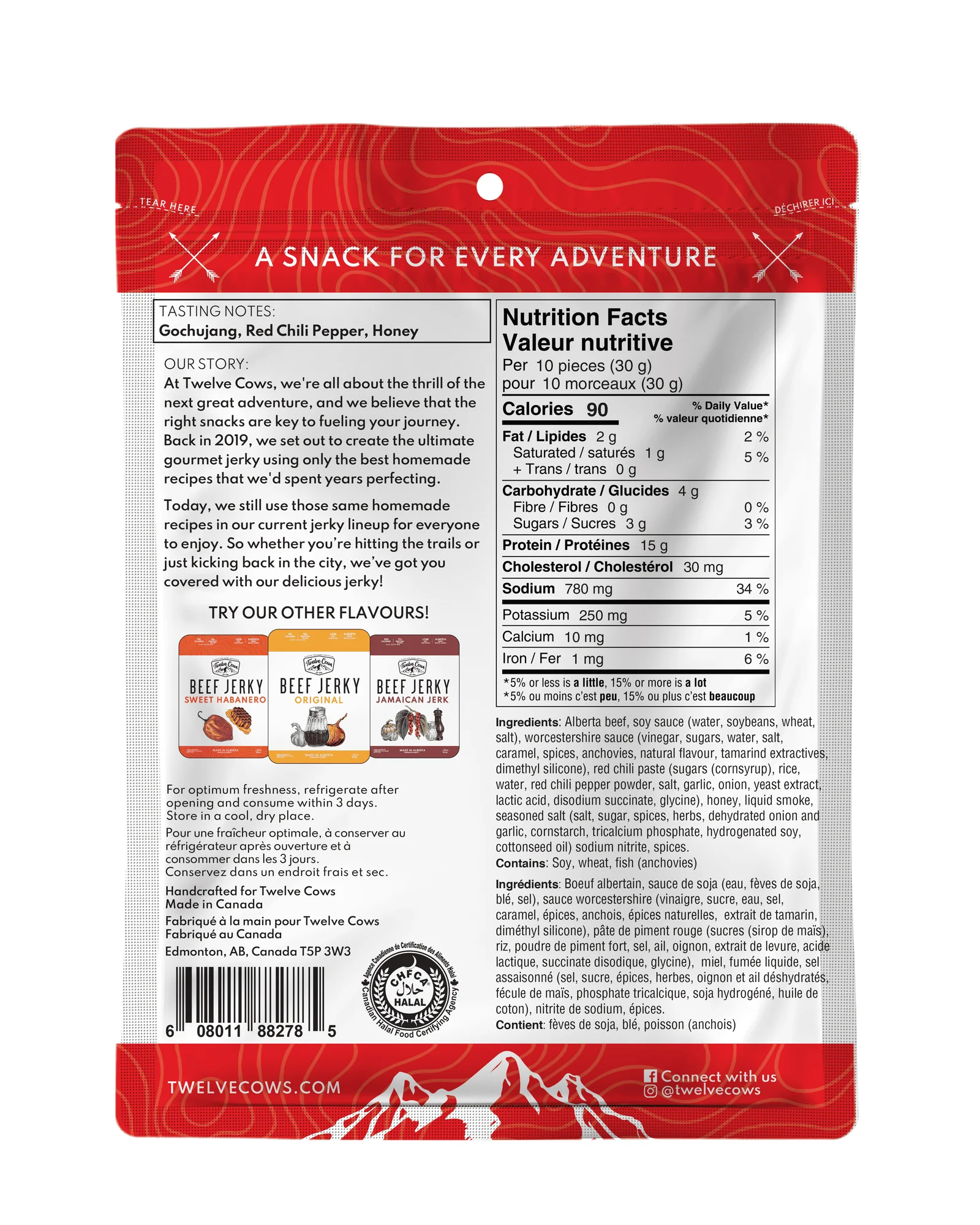 A sophisticated bold blend of Korean heat with a hint of honey that caters to all your sweet and spicy cravings. Instead of attempting to put together a Korean dish at home we thought we would make things easy and provide one to you in a convenient resealable bag. The perfect snack for every adventure.